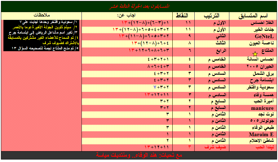 المتسابقين الذين اجابوا اجابة صحيحة على السؤال 14