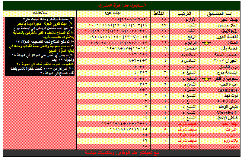 النتيجة بعد الجولة عشرين