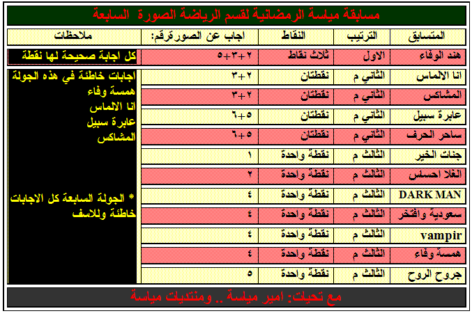 اليكم نتائج المسابقة الرمضانية الرياضية برعاية امير مياسة