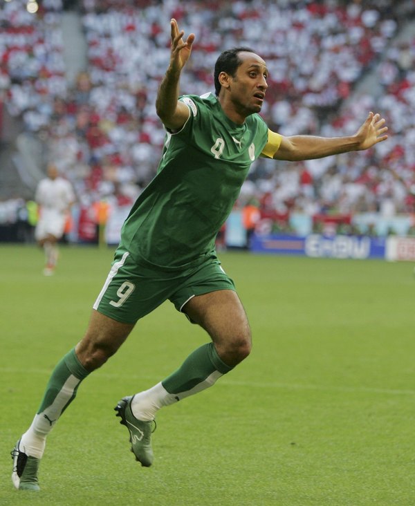 13- سامي بعد تسجيله للهدف الثاني للمنتخب السعودي في كاس العالم 2006 ضد تونس
