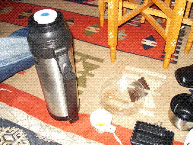 انا الان قمت اصنع القهوة حتى ناخذها معنا الى تبليتسه