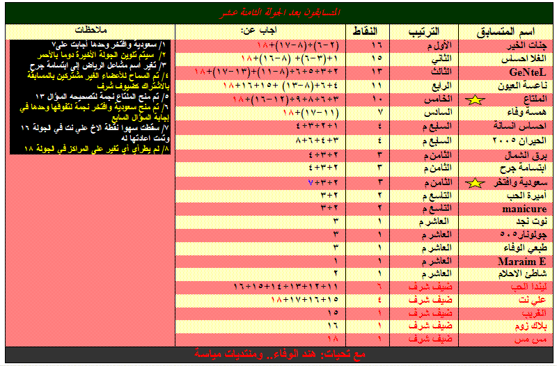 والذين اجابوا على السؤال 19 اجابة صحيحة هم: