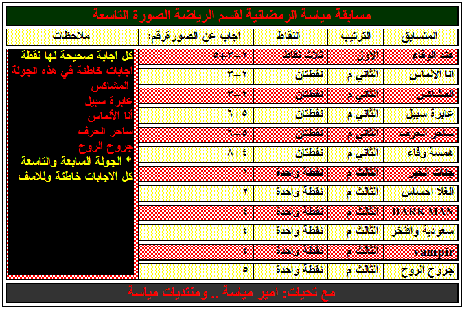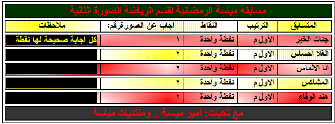 اليكم نتائج المسابقة الرمضانية الرياضية برعاية امير مياسة