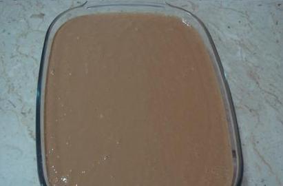 2- في صينيه بايركس قومس بدهن ارضية الصينيه بقليل من خليط الكاكاو السابق ثم قومي بغمس قطعه بسكويت بالحليب وضعيها في الصينيه كرري العملية حتى تتكون لديكي طبقه من البسكويت .